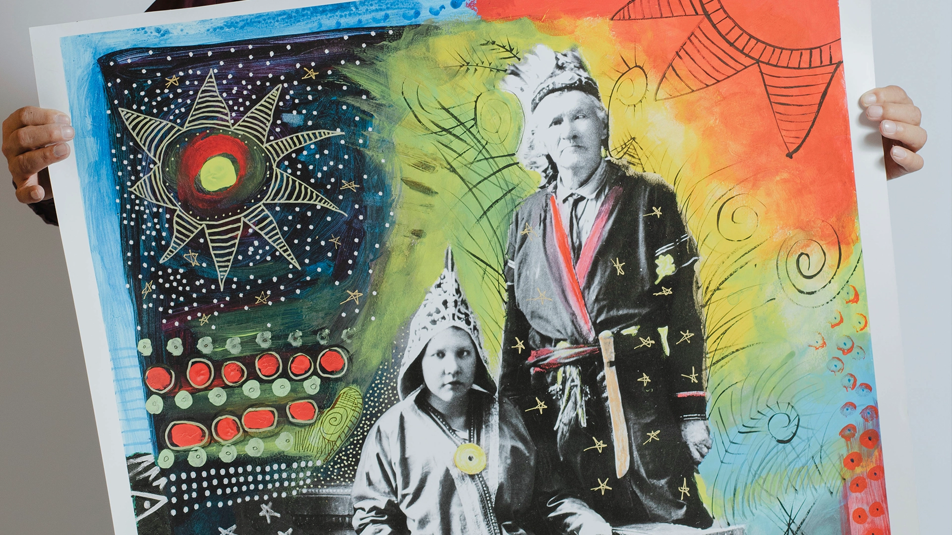 Alan Syliboy is a celebrated Mi’kmaw artist, musician, and storyteller from Millbrook First Nation, Nova Scotia. His distinctive style, inspired by Mi’kmaw petroglyphs and traditional stories, bridges the ancient and the contemporary. Alan’s artistic practice spans multiple mediums, including painting, sculpture, music, and animation, with his work celebrated locally and internationally. Alan Syliboy’s work is influenced by the Indigenous Mi’kmaq rock drawing and quill weaving traditions. Working in acrylic and mixed media, Alan creates vibrantly coloured images exploring the themes of family, searching, spirituality, struggle, and strength. The use of layering symbols and mark making creates depth and texture in Alan’s work.
