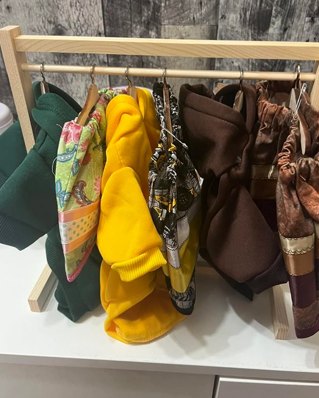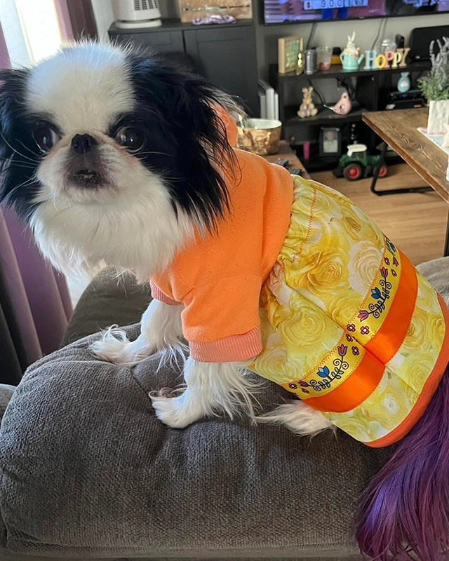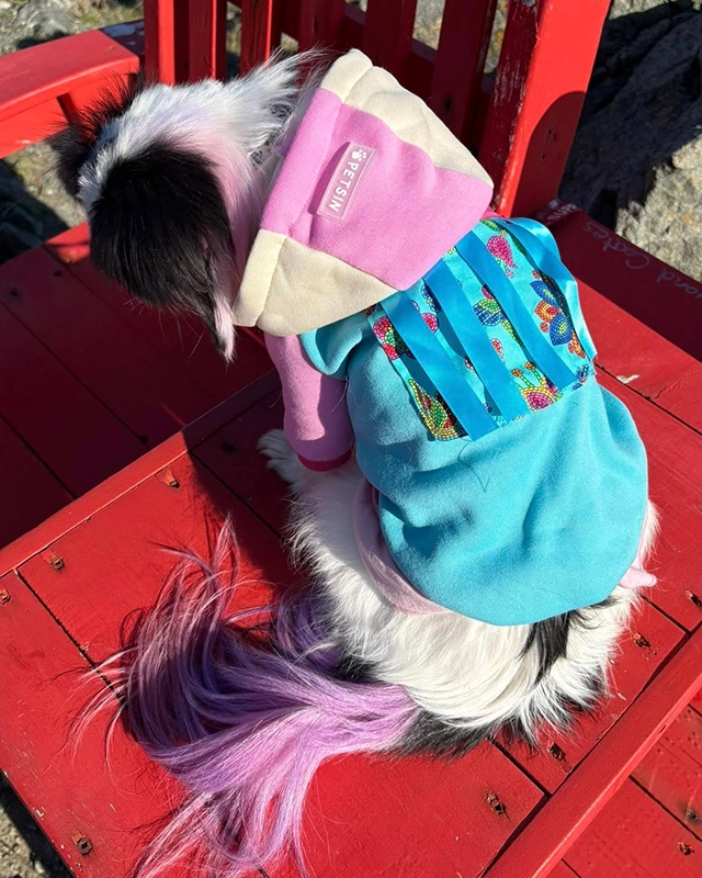 Cheryl Gehue is a creative force blending cultural tradition with contemporary design. A proud Mi’kmaw from Sipekne’katik, Nova Scotia, Cheryl specializes in Indigenous clothing for pets—through her business, Boujee Indigenous Pet Fashions. Her business offers ribbon skirts, coats, bandanas, and more. This unique offering reflects the way pets have become a part of cultural gatherings and family identity.