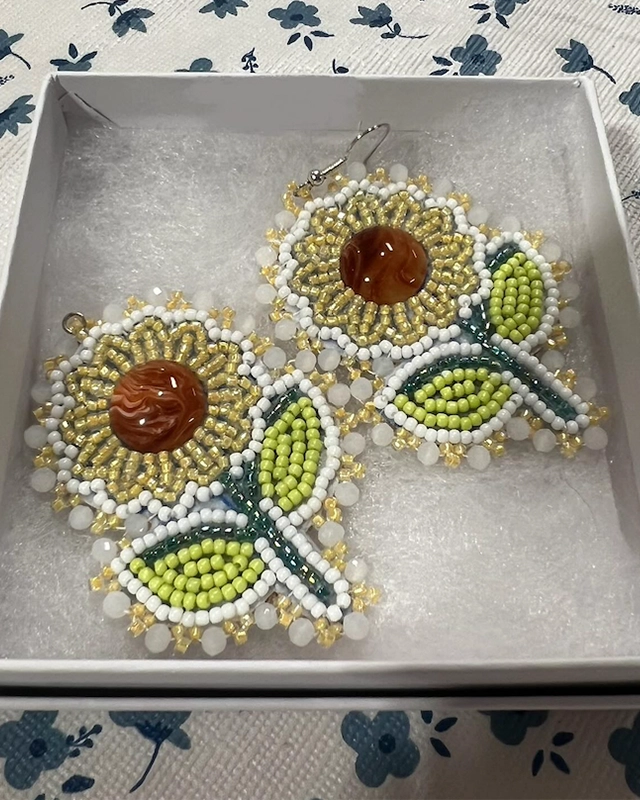 Beadwork, for Skylar, is a deeply personal and cultural practice. Her designs carry traditional Mi’kmaw symbolism and incorporate patterns, colors, and stories passed down through generations. She honours the land by using sustainable materials and grounding her creative process in respect and mindfulness. Though polymer clay is not a traditional Mi’kmaw art form, Skylar infuses each piece with elements of nature and Mi’kmaw identity, bridging past and present in meaningful ways.
